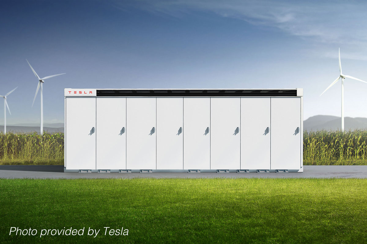 Each Megapack is pre-assembled with the battery modules, bi-directional inverters, a thermal management system, an AC main breaker and controls in one enclosure.